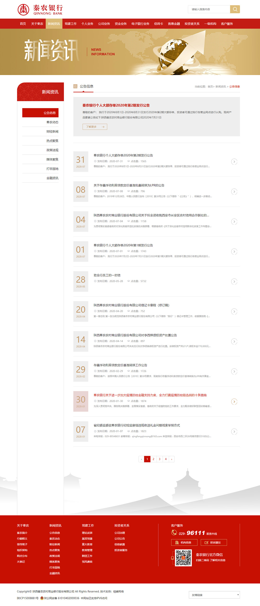 上線(xiàn)時(shí)間 :2020.08 關(guān)鍵詞:扁平化,紅色系,銀行 網(wǎng)址:http://www.qinnongbank.com/