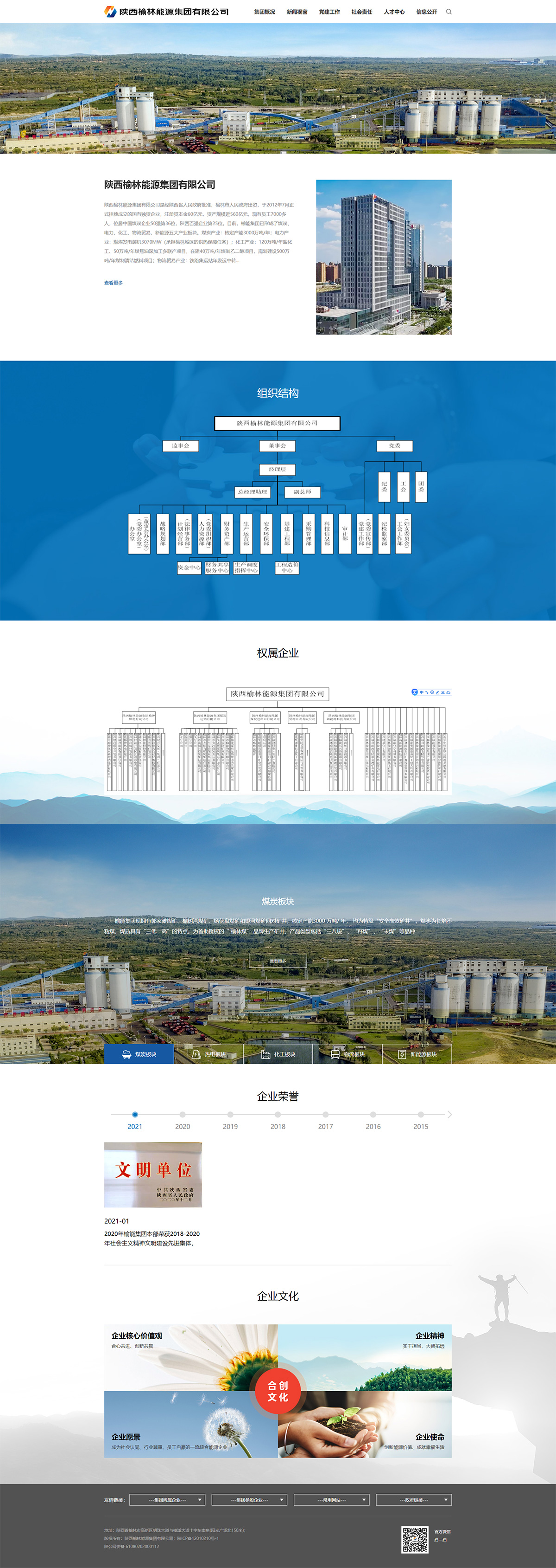 陜西榆林能源集團有限公司是經(jīng)陜西省人民政府批準,榆林市人民政府出資,于2012年7月正式掛牌成立的國有獨資企業(yè),注冊資本金60億元,資產(chǎn)規模近560億元,現有員工7000多人,位居中國煤炭企業(yè)50強第36位,陜西百強企業(yè)第25位。目前,榆能集團已形成了煤炭、電力、化工、物流貿易、新能源五大產(chǎn)業(yè)板塊。